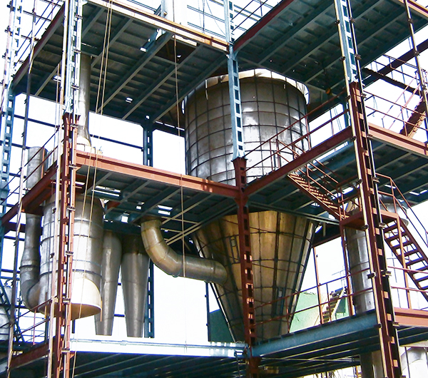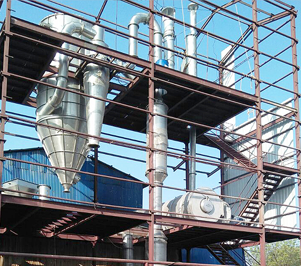 Spray drying is a highly efficient drying method with possibility to have close control over the particle size, bulk density and moisture content of the dried powder. The spray drying process consists of atomisation of the liquid feed into fine droplets with the help of spray nozzle/s or rotating disc. These fine droplets are brought in contact with hot air in a suitably designed drying chamber. The liquid gets vaporised and the solid particles in dry form are collected at the bottom of the chamber. The fine particles which are carried by the air are separated either in cyclone separator or bag filter or wet scrubber.